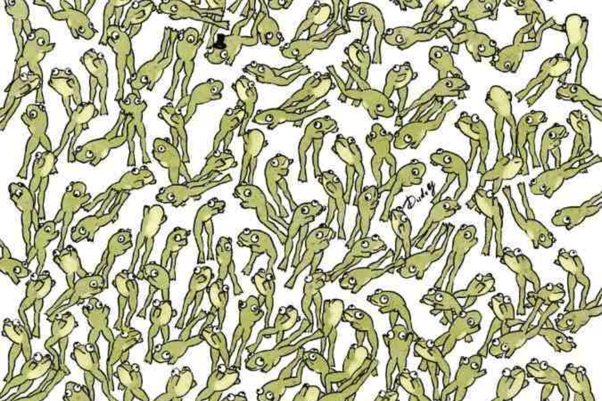 Agora é o seu desafio: observe atentamente a imagem e tente localizar o sapo que não está pulando! Será que você consegue encontrá-lo em apenas 5 segundos?