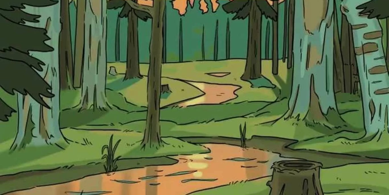 Prepare-se para o desafio de hoje que vai testar sua percepção! Observe com bastante atenção a imagem de uma floresta densa ao entardecer, com árvores altas, riacho. Existe um veado camuflado na floresta para você identificar nesta imagem. Você consegue achar em até 20 segundos?