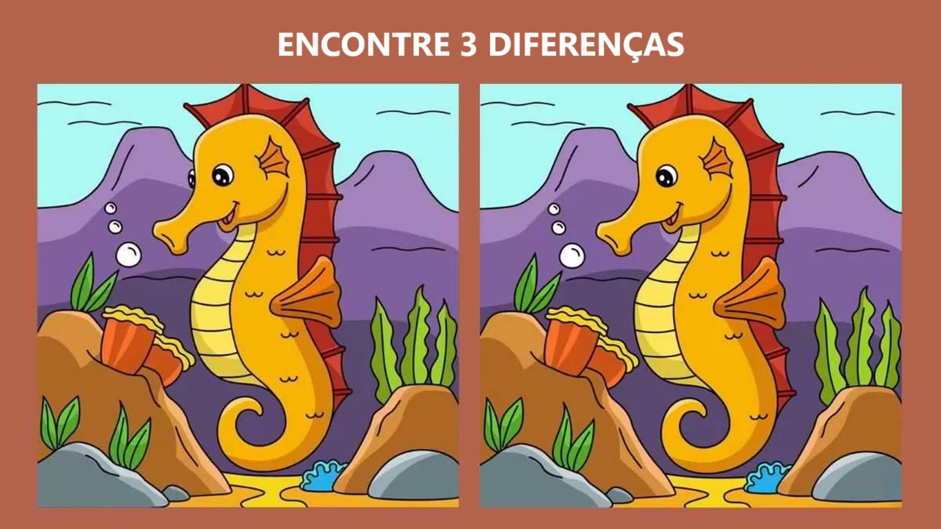 O desafio visual é uma forma divertida, interessante e estimulante de testar nossas habilidades de observação, cognitiva e atenção aos detalhes. Eles envolvem duas imagens quase idênticas, mas com pequenas diferenças entre elas. O objetivo é encontrar todas essas diferenças. Neste desafio específico, você terá que encontrar três diferenças entre imagens de cavalos-marinhos em 15 segundos. Pronto para começar?