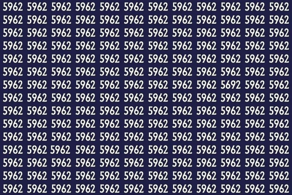 Está preparado para testar sua agilidade visual? O desafio de hoje é simples, mas exige atenção e rapidez. Na imagem que você está vendo, há vários números “5962” espalhados por toda a tela. Porém, entre eles, existe um número diferente: o 5692.