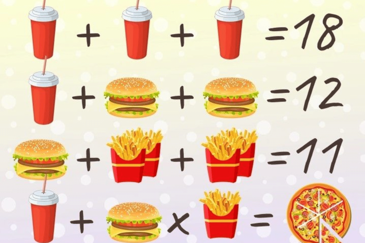 Agora é a sua vez! Com base nessas informações, você consegue descobrir o valor da pizza? Analise as equações, encontre os valores de cada item e resolva o desafio. Se conseguir encontrar a resposta em menos de 21 segundos, você pode ter um excelente raciocínio lógico!