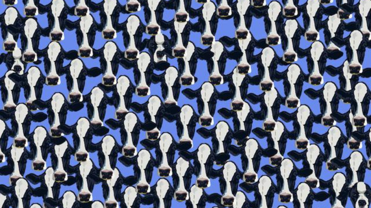 Então, prepare-se para aguçar seus olhos de detetive! À primeira vista, a imagem parece uma simples sequência de vacas, mas se você olhar com atenção, perceberá que algo está diferente. Vamos começar?