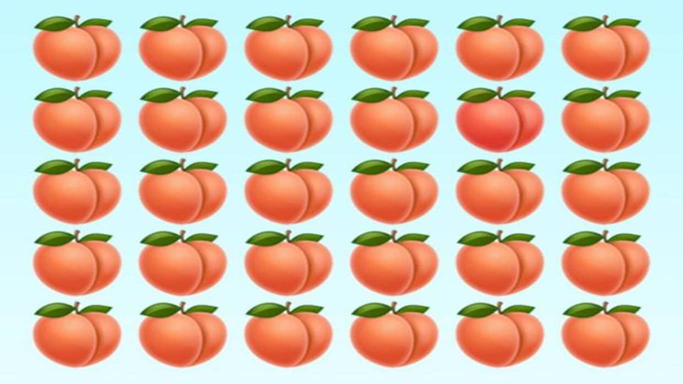 - Olhe para o padrão geral – A repetição dos pêssegos cria um padrão visual, então se um deles parecer “quebrar” essa uniformidade, pode ser o que você está procurando.
