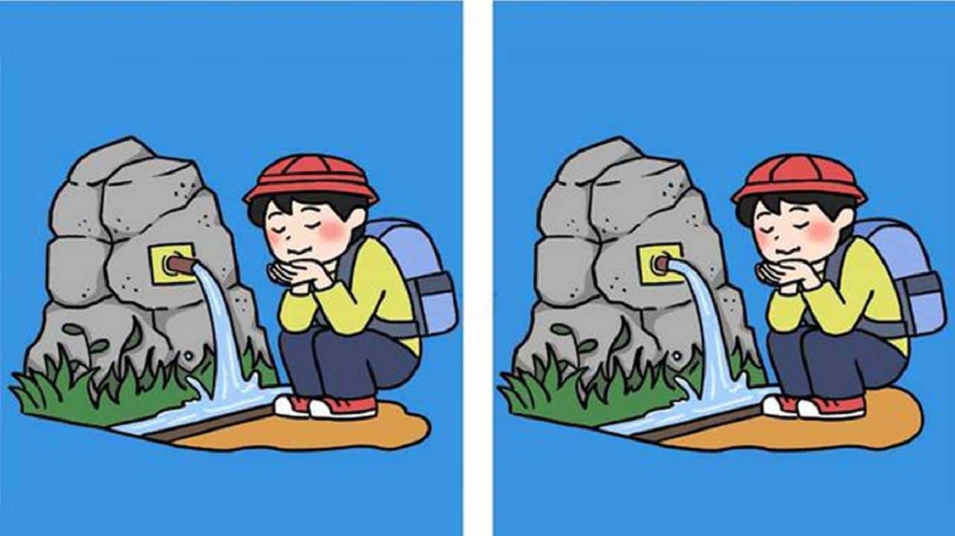 - Compare elemento por elemento: Vá alternando o olhar entre as duas imagens, analisando cada elemento, como o chapéu vermelho ou o fluxo de água.