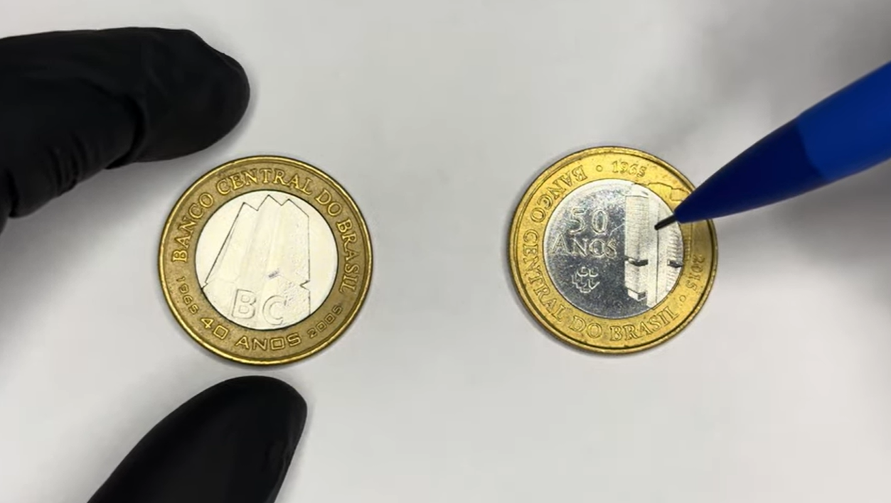 Esta moeda foi lançada em 2005 para comemorar o 40º aniversário do Banco Central do Brasil.