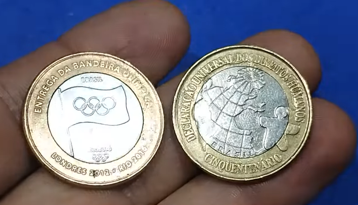 2 moedas de 1 real que valem até R$10MIL. Imagem: canal reliquias historicas