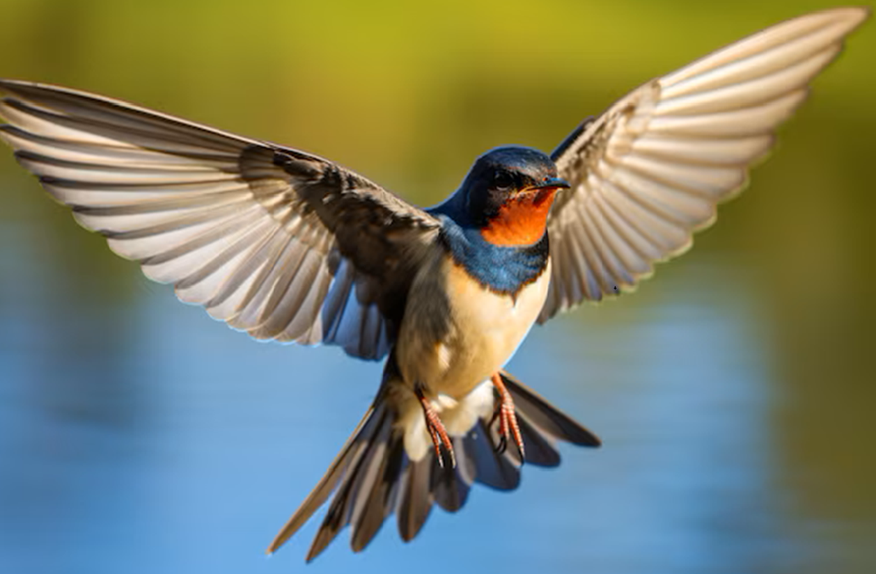 - Habilidade de voo: As andorinhas têm um voo ágil e gracioso. Suas asas longas e pontiagudas e caudas bifurcadas ajudam a manobrar com precisão enquanto caçam insetos no ar.