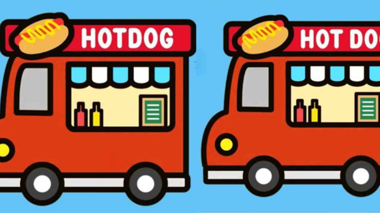 Agora, vamos ao desafio! Abaixo estão duas imagens de um vibrante caminhão de cachorro-quente. Seu objetivo é identificar as 3 diferenças entre as imagens em apenas 15 segundos. Pronto para o desafio? Vamos lá!