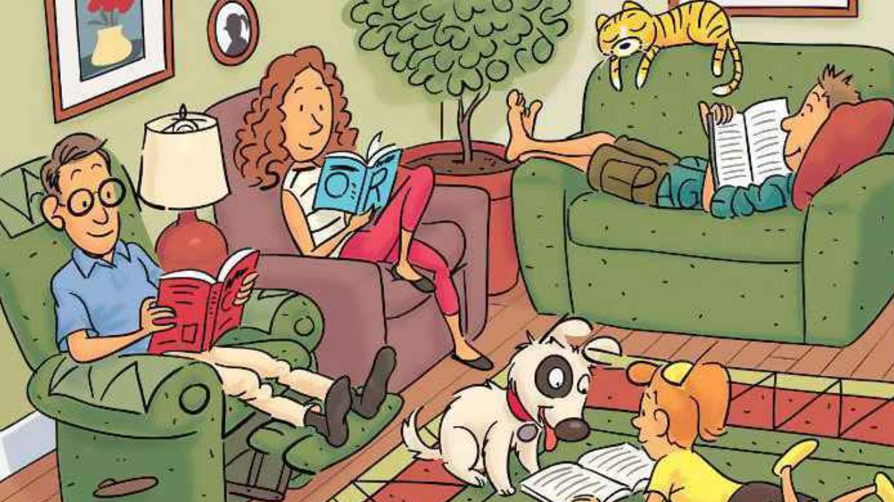 Portanto, se você gosta de testar suas habilidades mentais, este desafio é perfeito para você. Na imagem a seguir, vemos uma cena de sala de estar onde os membros de uma família estão relaxando e lendo livros. Escondida nesse ambiente, há a palavra “história”. Seu objetivo é encontrá-la em apenas 11 segundos! Este desafio irá colocar à prova sua rapidez e atenção aos detalhes.