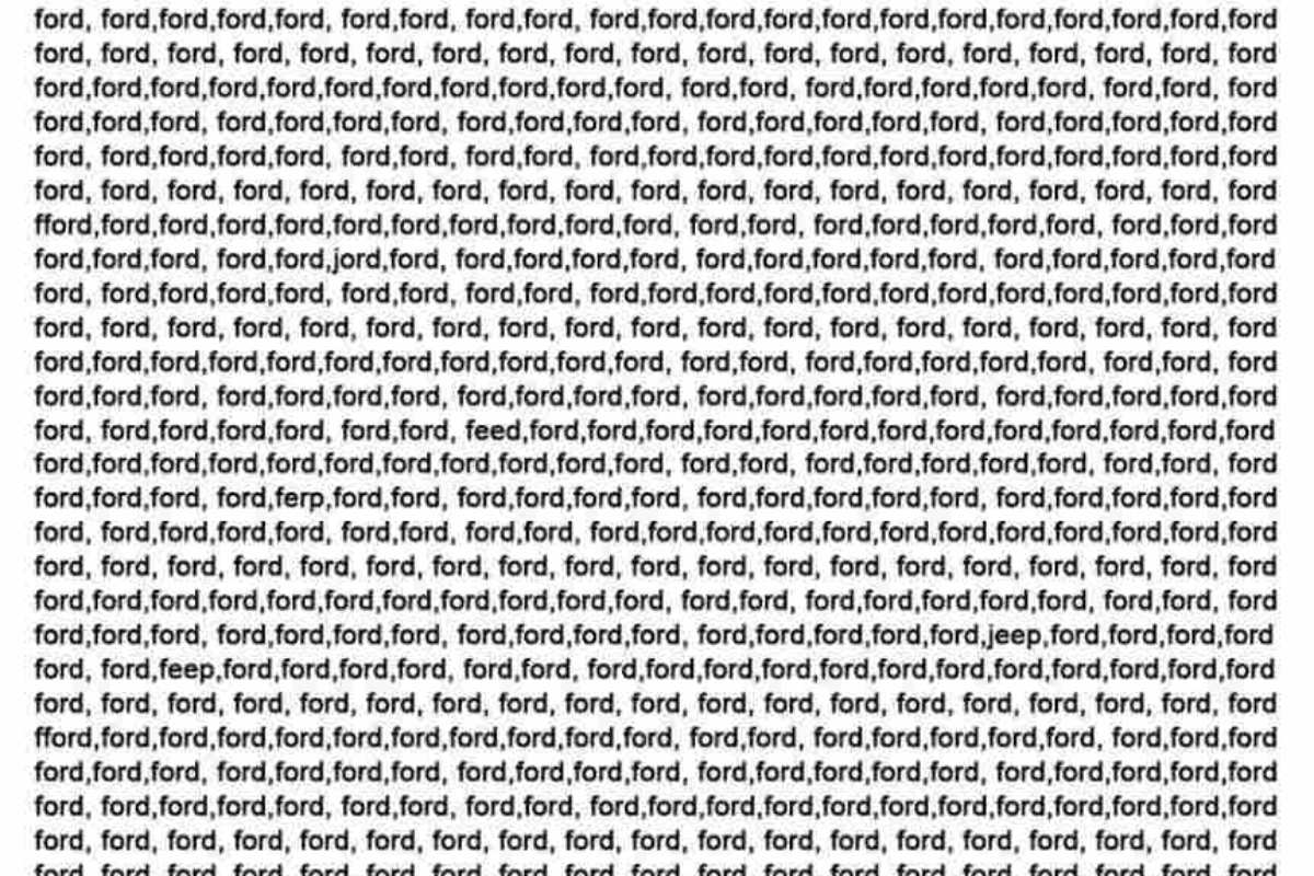 O desafio para você é simples: encontre a palavra “jeep” no meio de todas essas palavras “ford”. Parece fácil? Mas a concentração e atenção aos detalhes são essenciais para conseguir localizar a palavra correta rapidamente. Será que você consegue encontrá-la em menos de 8 segundos? Teste sua habilidade visual e prove seu poder de observação!