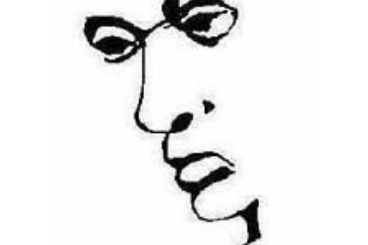 Na imagem abaixo, vemos o retrato de um homem desenhado de maneira artística e minimalista. No entanto, essa não é uma simples imagem. Escondida habilmente dentro desse rosto está a palavra “liar” (mentiroso). Você consegue encontrá-la?