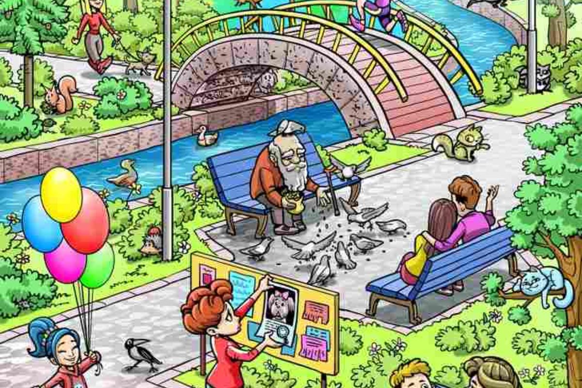 Neste desafio, você precisa localizar um cachorrinho perdido em uma cena de parque cheia de detalhes, tudo isso em menos de 15 segundos. Você precisa correr, porque a dona dele já está desesperada e o cachorrinho também está louco para voltar para casa. Você aceita o desafio?