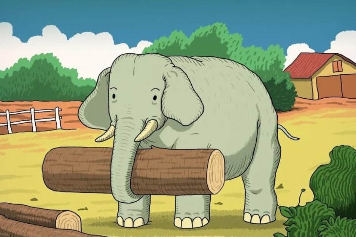 A imagem compartilhada abaixo retrata um cenário de aldeia onde um elefante é visto carregando um tronco de madeira. Mas o elefante não é o que procuramos. Um cavalo está escondido nesta cena à vista de todos.