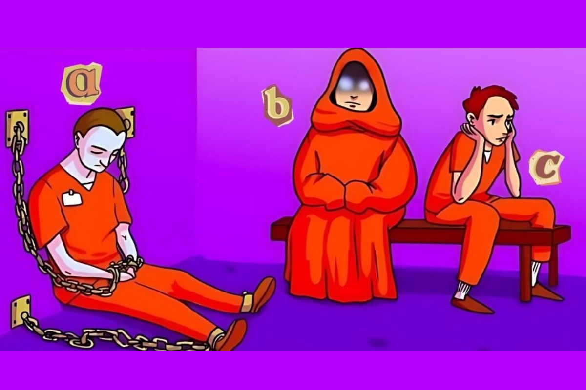 Agora, o desafio é identificar qual desses três prisioneiros é, na verdade, um fantasma. Preste bastante atenção aos detalhes, especialmente nas características incomuns que podem entregar a verdadeira identidade de um fantasma. Qual deles não parece pertencer ao mundo real?