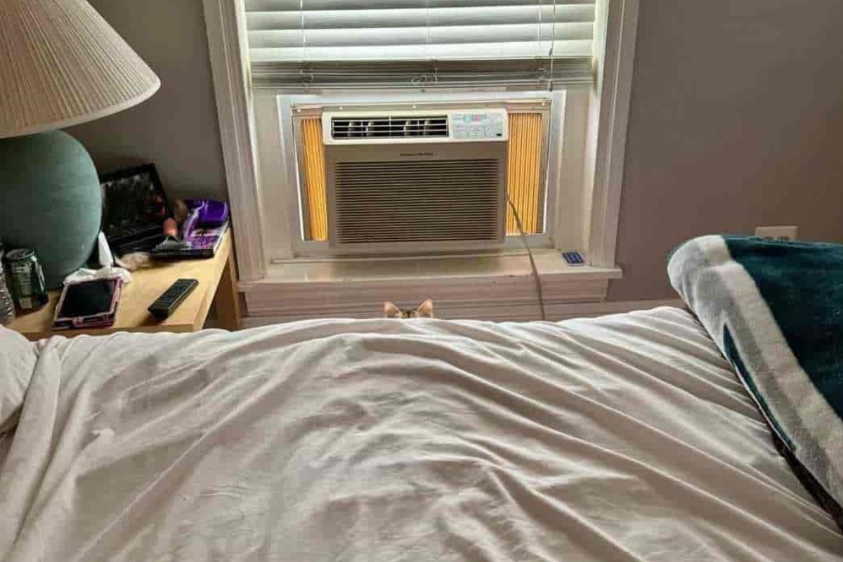 Logo abaixo você vai ver apenas a imagem de um quarto e o enunciado nos afirma que um gato está escondido em algum lugar desse ambiente. Nesse sentido, você tem a difícil missão de apontar a localização do felino apesar de todas as distrações ao seu redor. Então, mantenha-se concentrado enquanto tenta encontrar esse animal escondido no ambiente em menos de 10 segundos. Afinal, o tempo é muito curto e você precisa ser muito rápido para conseguir chegar a solução dessa tarefa.