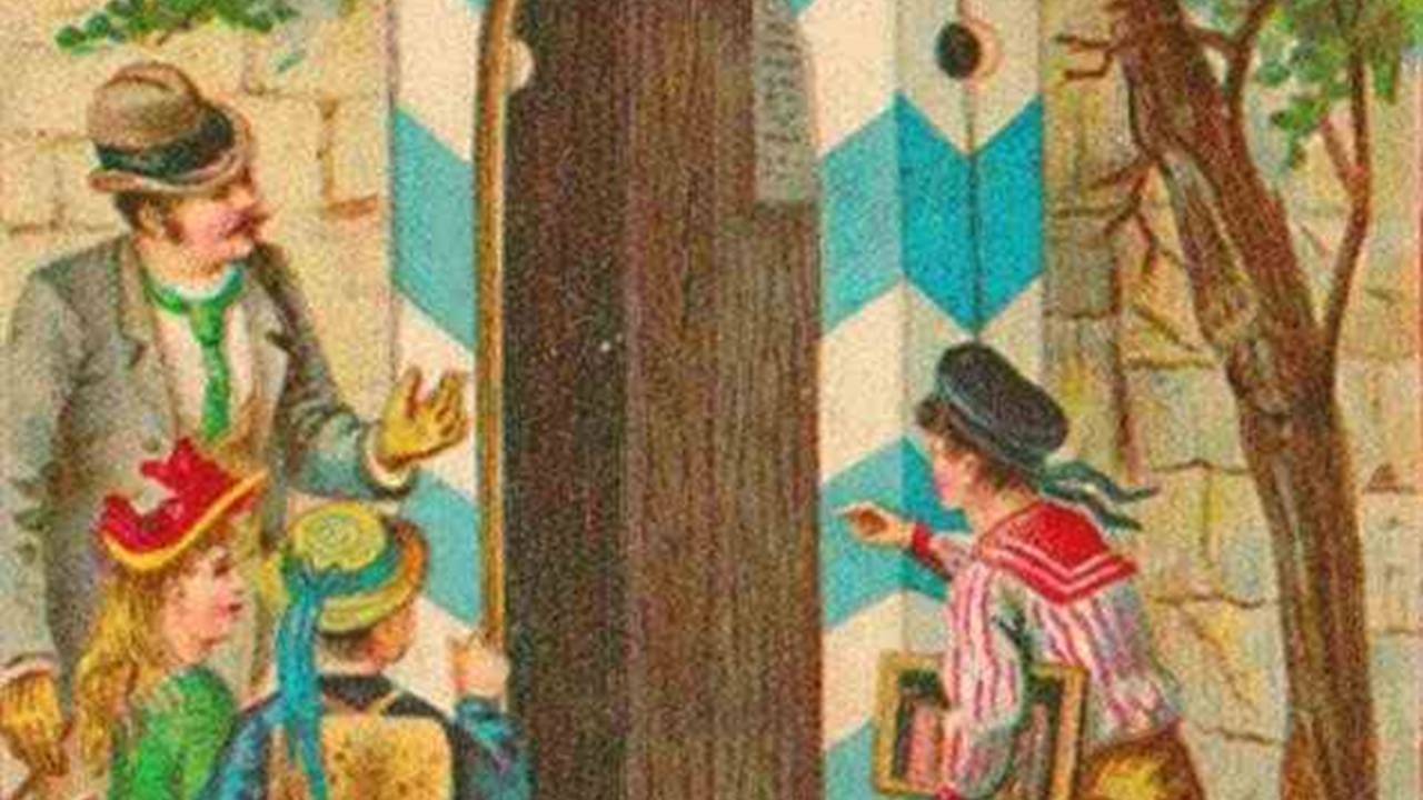 Prepare-se para um desafio estimulante. Numa imagem nostálgica, três crianças e um cavalheiro expressam surpresa. Eles procuram por um vigia, uma figura familiar em seu dia a dia, agora misteriosamente ausente.