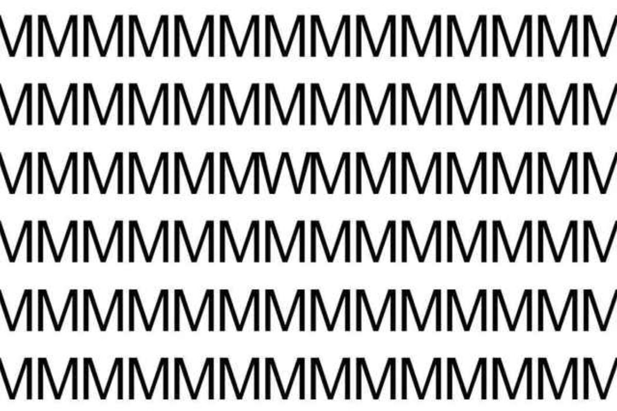 A imagem mostra uma grade composta por várias linhas de letras “M” maiúsculas. Todas as letras estão organizadas em um padrão repetitivo e homogêneo. Em algum lugar dentro dessa grade, há uma letra “W” escondida entre os “M’s”. O desafio é encontrar a letra “W” em apenas 10 segundos.