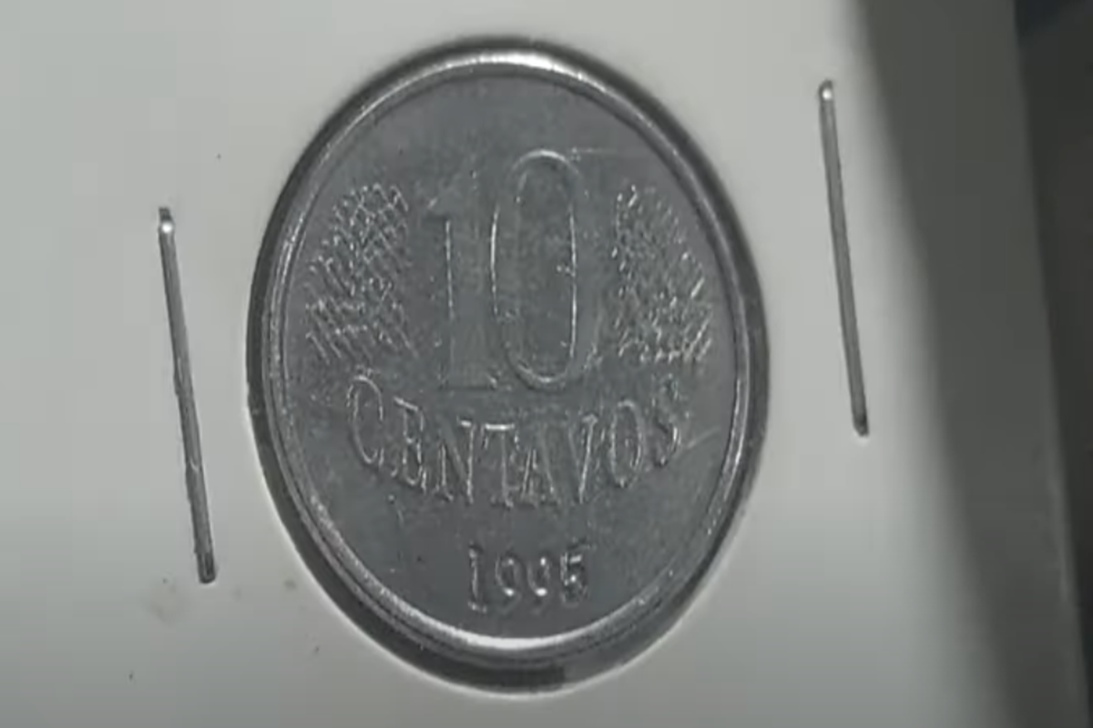 O valor de uma moeda de 10 centavos de 1995 com erro de cunhagem pode variar significativamente, podendo chegar a R$ 550 ou mais. Veja o vídeo: