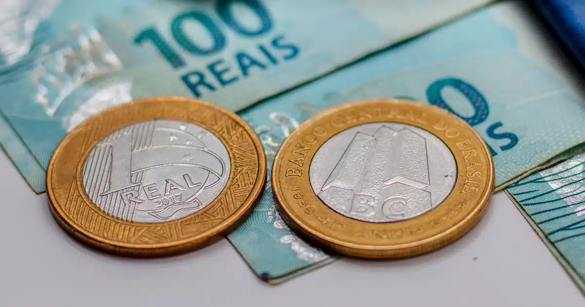 Close-up da moeda de 1 Real com o ano 2013, o exemplar comum que, com um defeito de cunhagem, pode valer uma fortuna entre colecionadores de moedas raras.