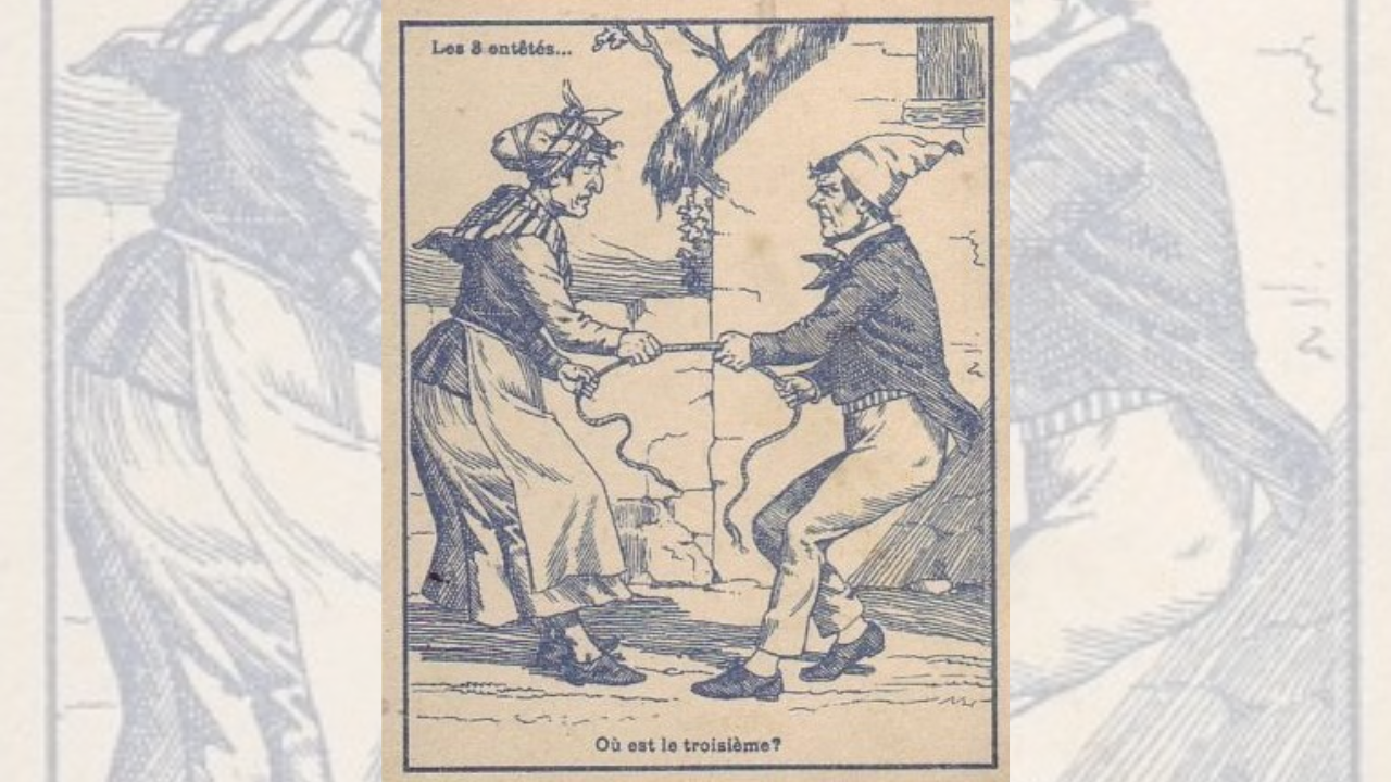 Na imagem acima, é possível observar um casal em conflito. O homem e a mulher seguram as pontas de uma corda, parecendo estar envolvidos em uma espécie de disputa.