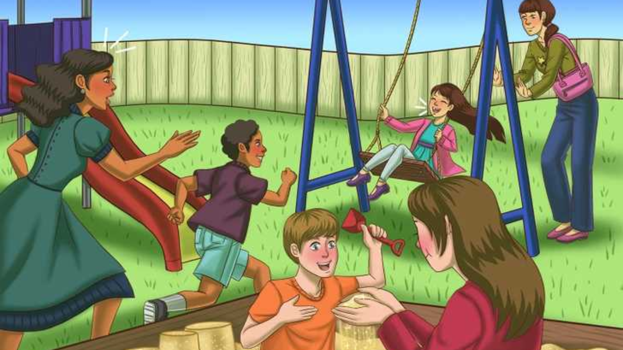 E o momento tão esperado chegou! A fada madrinha está localizada em pé, empurrando a criança no balanço. Ela guarda em sua bolsa rosa uma varinha de condão! Se você conseguiu encontrar, parabéns! Você demonstrou habilidades impressionantes de observação e resolução de problemas.
