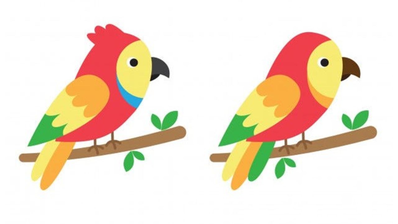 A figura acima exibe duas imagens idênticas apresentando um simpático papagaio pousado em um ramo de árvore.