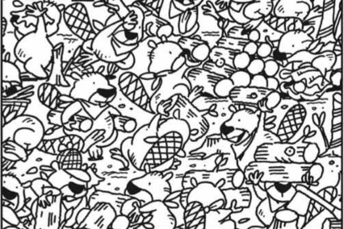 No entanto, há uma ostra escondida em algum lugar dessa imagem movimentada. O desafio é encontrar essa ostra em apenas 15 segundos! Você consegue? Utilize suas habilidades de observação para identificar a ostra camuflada entre os castores. Fique atento aos detalhes e boa sorte!