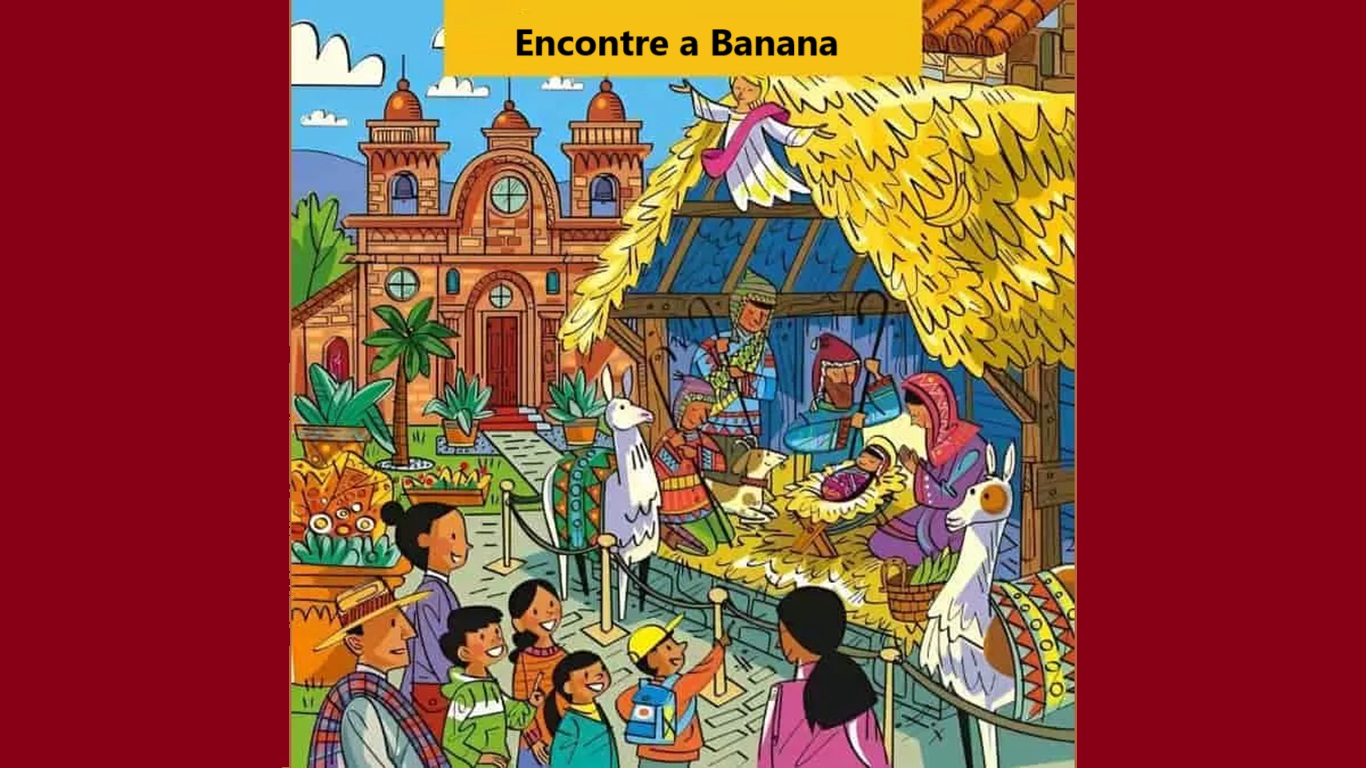 Com apenas 5 segundos para encontrar a banana escondida em uma imagem de uma apresentação do nascimento de Jesus em uma praça pública, este desafio de ilusão de ótica testa sua percepção visual e rapidez de raciocínio. A cena rica em detalhes e elementos variados torna a tarefa ainda mais complexa, exigindo uma análise rápida e focada para identificar a banana entre os diversos componentes da imagem. Este exercício exige atenção aos mínimos detalhes e uma capacidade de diferenciar rapidamente o objeto incomum dentro do contexto da cena. A pressão do tempo adiciona um elemento extra de dificuldade, tornando este desafio uma corrida contra o relógio. Boa sorte e divirta-se com esta intrigante busca visual!