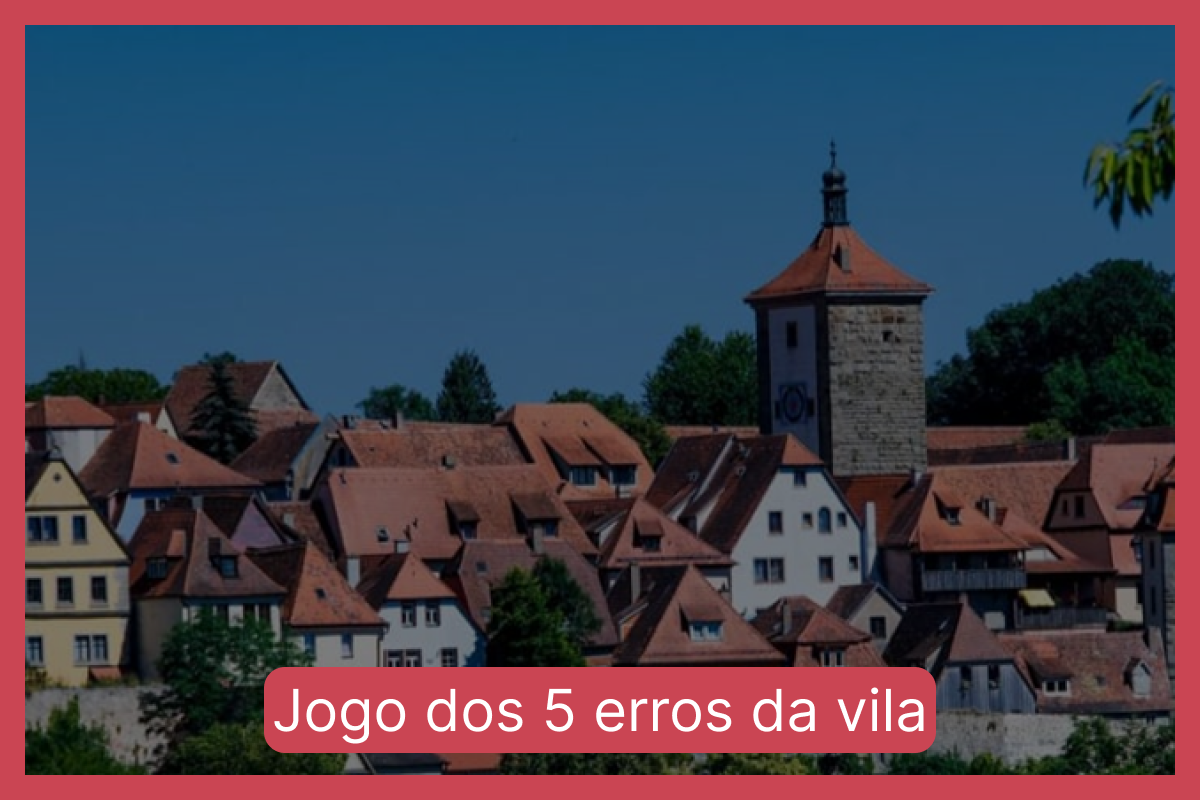 O jogo dos 5 erros da vila é uma versão bem simples e didática de um dos desafios mais populares do mundo todo. Afinal, quem não conhece esse exercício que já era popular antes mesmo do advento da internet, não é mesmo? Mas, será que você consegue concluir esse enigma quando lhe é oferecido pouco tempo para fazer a análise visual? Nesta matéria, você terá a chance de provar que é concentrado e rápido para resolver qualquer tarefa que demanda foco e agilidade.
