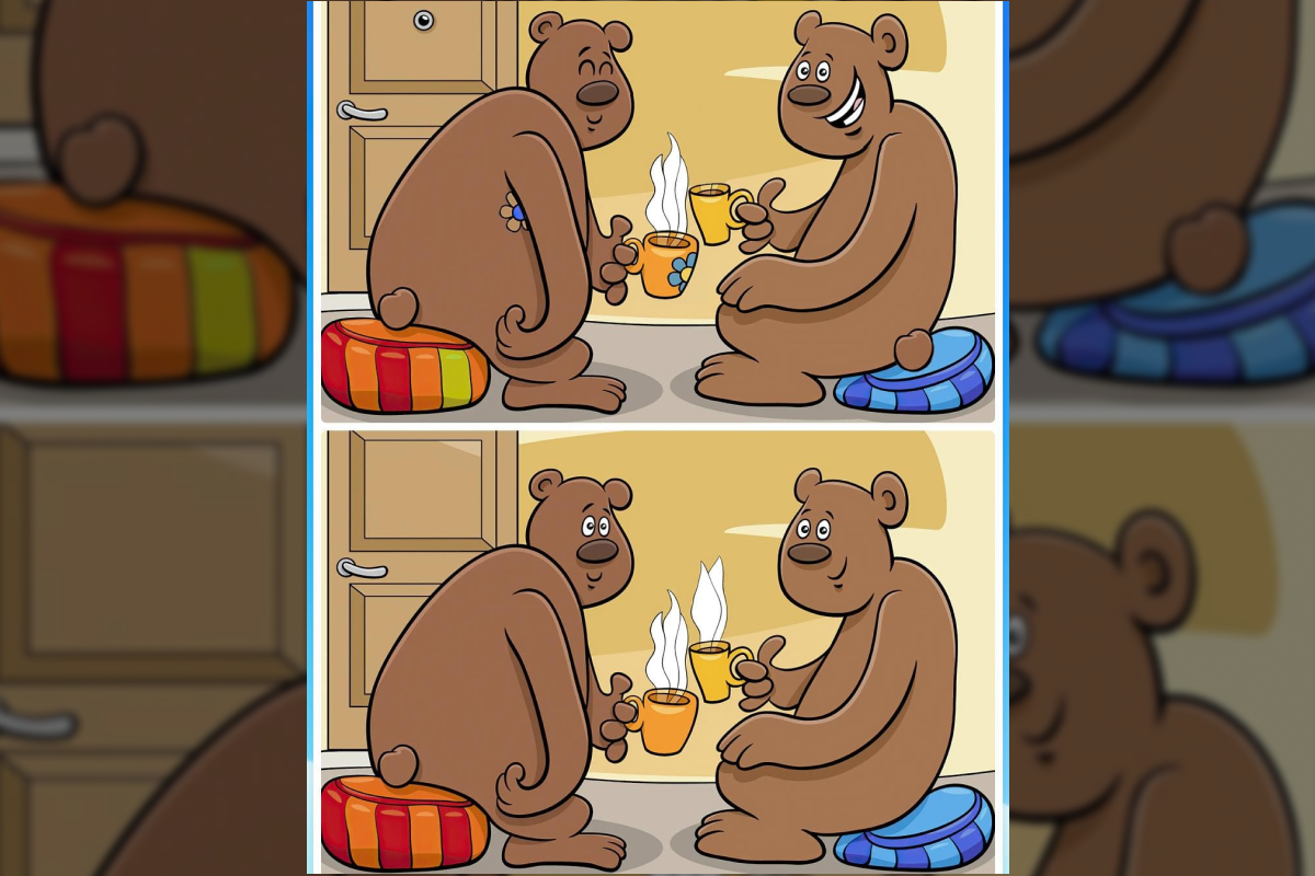 Logo abaixo, você verá duas imagens aparentemente iguais de dois ursos tomando café despretensiosamente. Nessa cena, algumas diferenças estão presentes, e a sua missão é encontrar cada uma delas em menos de 10 segundos para provar tanto sua capacidade visual quanto cognitiva de analisar qualquer figura, independentemente do tempo oferecido para concluir essa tarefa. Sendo assim, prove que consegue agora mesmo: