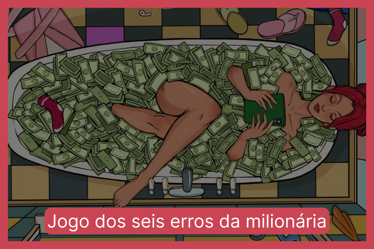 Logo abaixo, você verá uma cena em que uma milionária está relaxando em uma banheira de dinheiro, completamente despreocupada. No entanto, apesar de as duas imagens parecerem idênticas, há algumas diferenças sutis que as separam. Agora é o momento de testar sua concentração: será que você consegue encontrar os seis erros que diferenciam essas duas figuras? Confira a seguir: