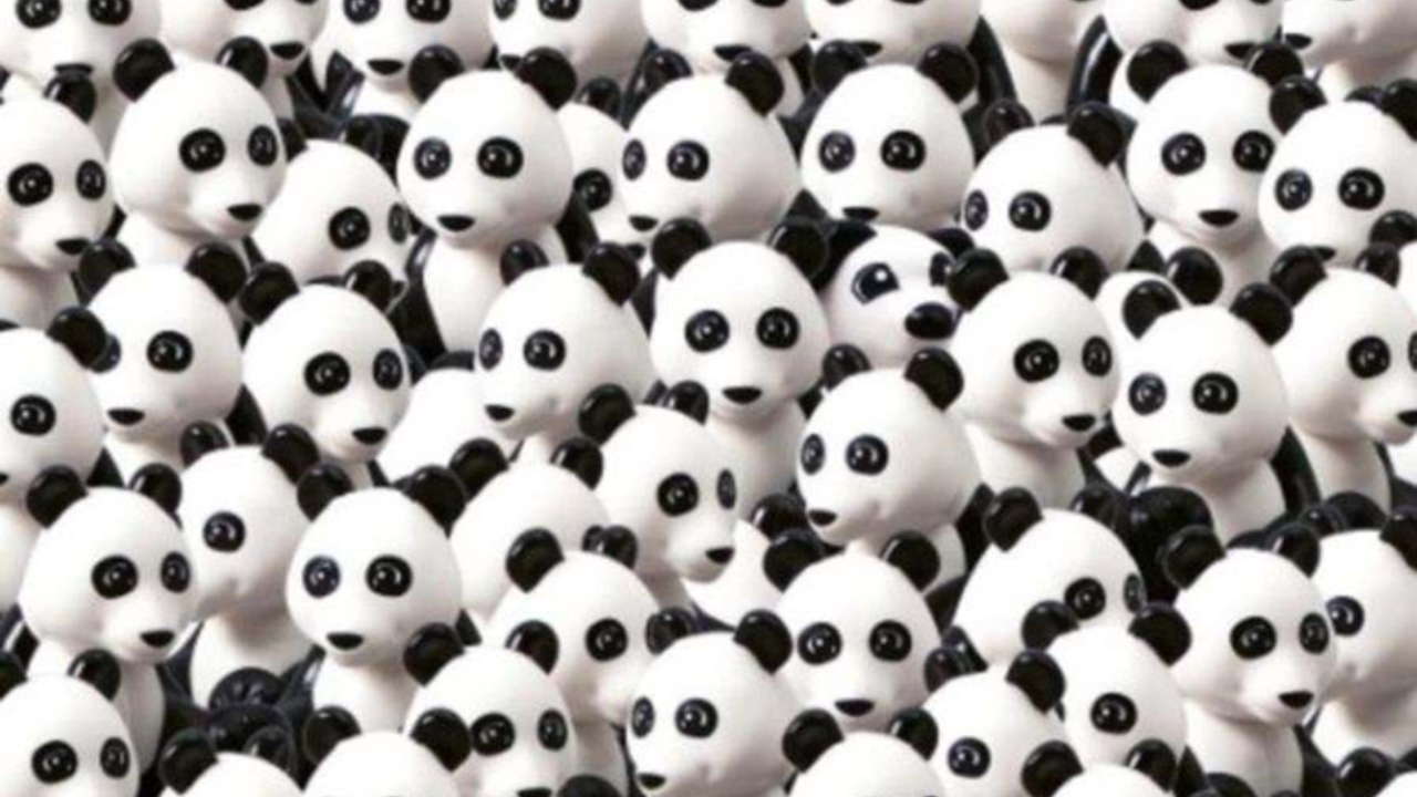 A paleta de preto e branco das pelagens dos pandas cria uma atmosfera visualmente cativante, tornando a tarefa de identificar o cachorro uma verdadeira aventura.