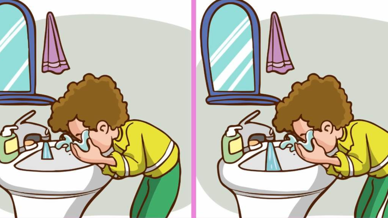 Explore cada canto das imagens. Já percebeu alguma diferença? O tempo é curto, e a busca pelas diferenças se torna mais empolgante à medida que os segundos passam do menino lavando o rosto.