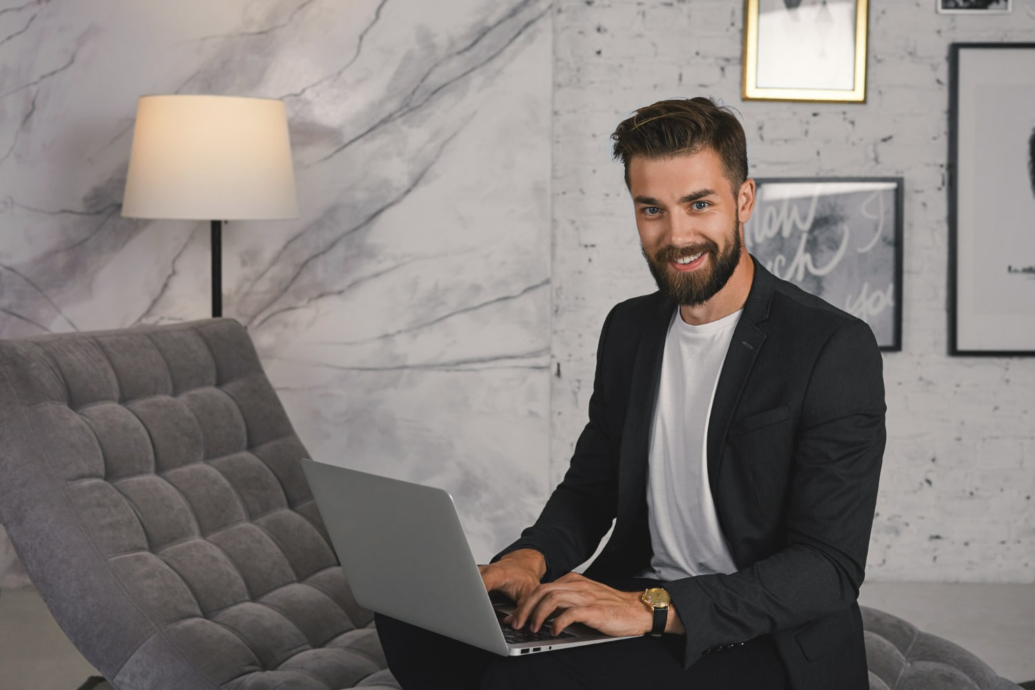 Homem-feliz-trabalhando-de-casa-em-home-office-com-notebook-para-artigo-sobre-profissões-que-pagam-em-dólar-2025