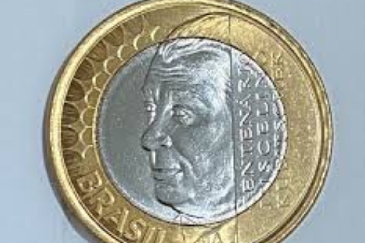 A moeda comemorativa de 1 real alusiva ao centenário de Juscelino Kubitschek tem se valorizado ano após ano. Conforme indicado pelo catálogo de Moedas com Defeitos, o item pode atingir o preço de R$ 600 caso apresente o defeito de reversão no verso.