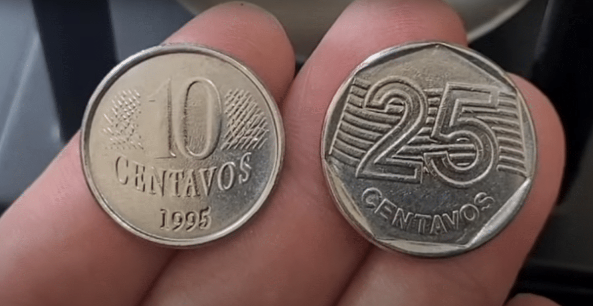 - Moeda de 25 Centavos: A moeda de 25 centavos de 1995 exibe a imagem de um lavrador debruçado, cuidando de uma planta.. Como na moeda de 10 centavos, as inscrições “FAO 1945/1995” e “Alimentos para o Mundo” estão presentes, além de “Brasil”, evidenciando o compromisso do país com a segurança alimentar.