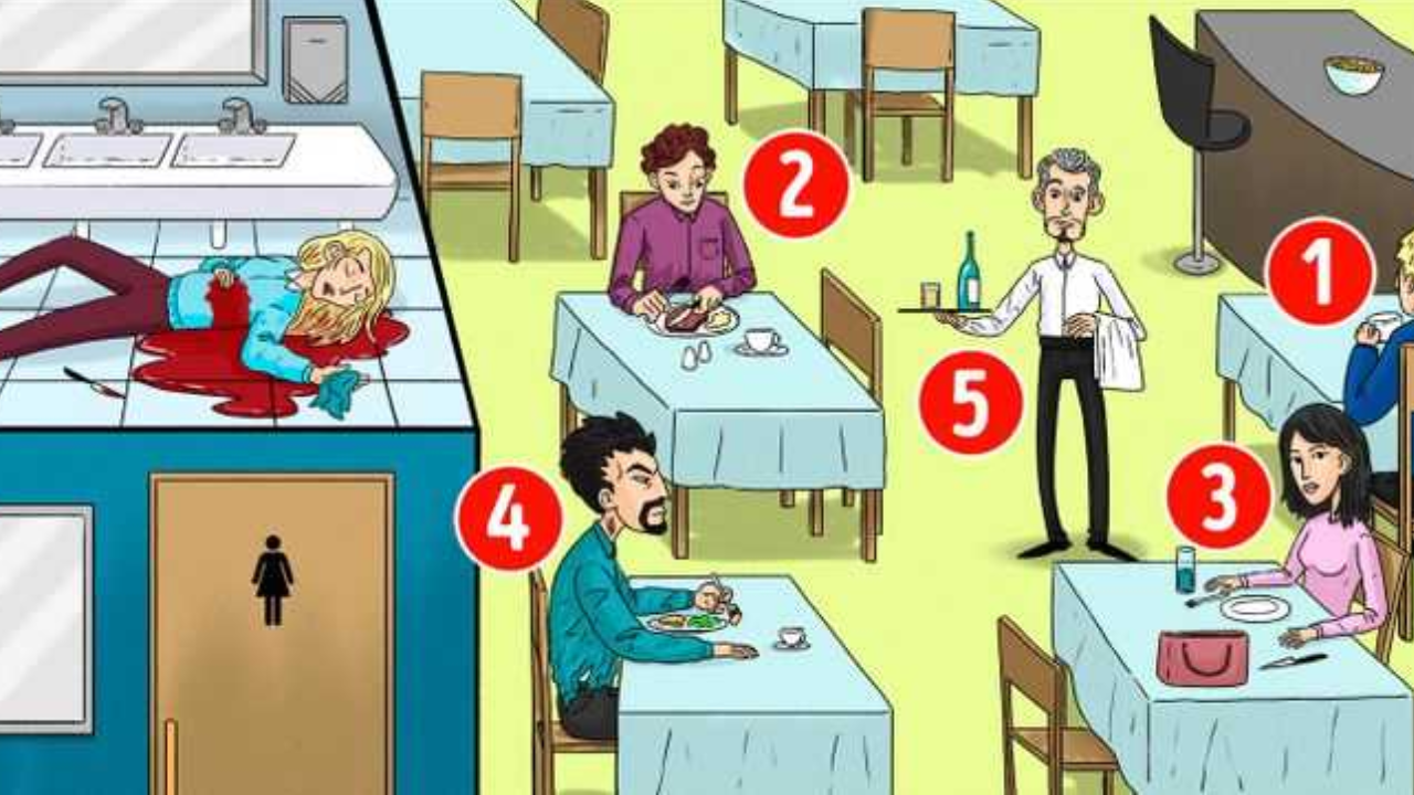 Uma mulher foi encontrada morta no banheiro de um restaurante e cinco suspeitos foram identificados. Seu objetivo? Identificar o assassino em apenas 5 segundos.