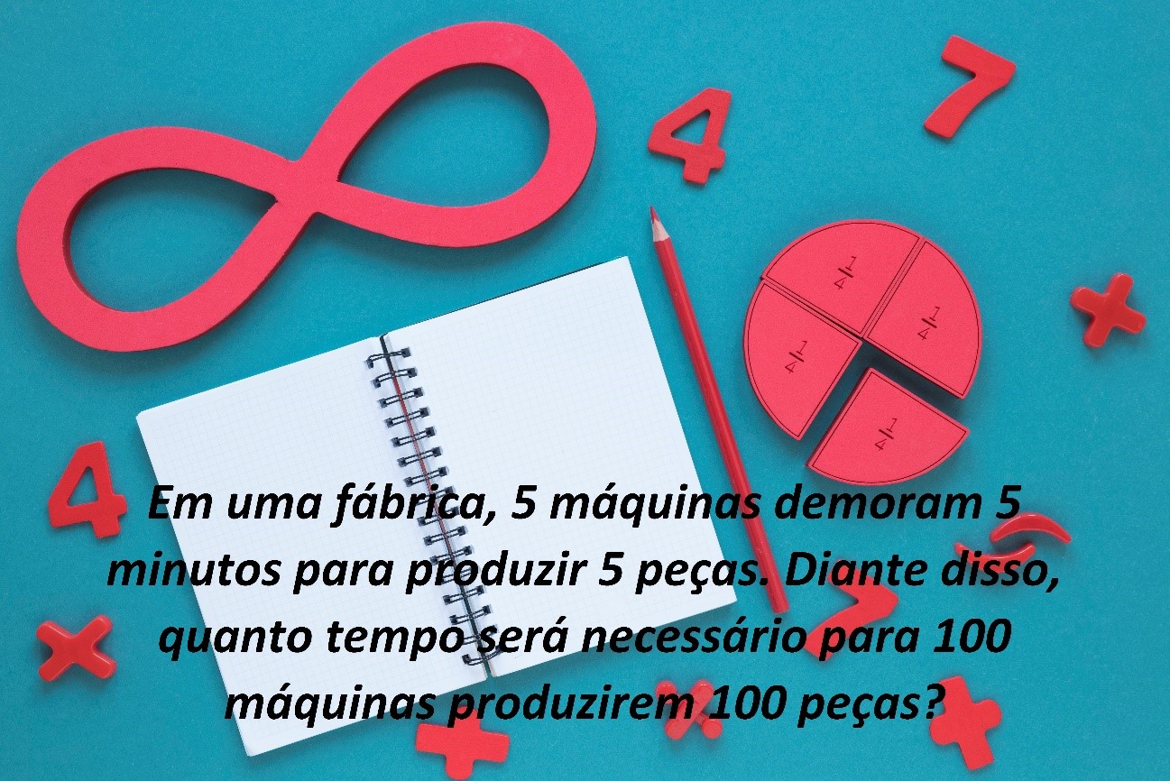 Em uma fábrica, 5 máquinas demoram 5 minutos para produzir 5 peças. Diante disso, quanto tempo será necessário para 100 máquinas produzirem 100 peças?