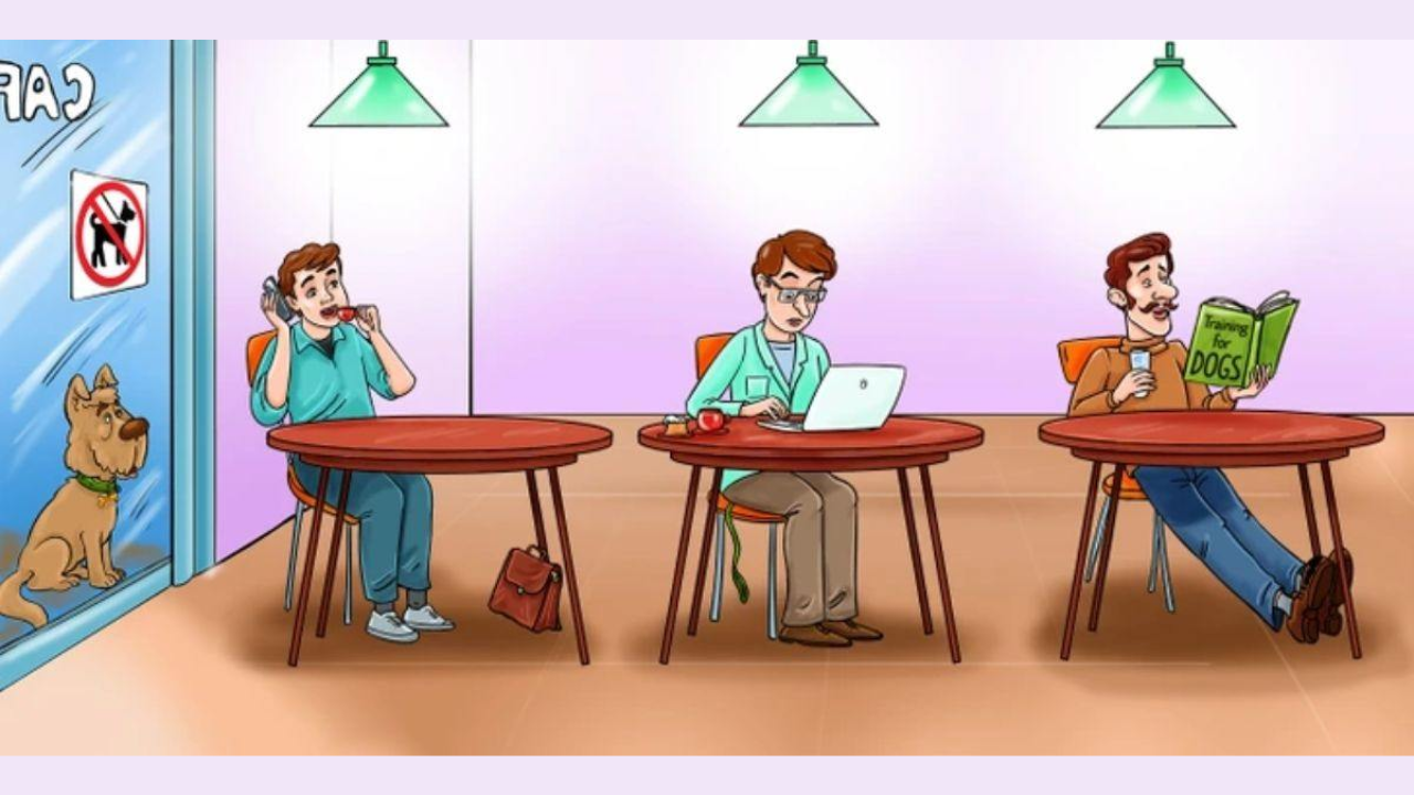 Imagine-se diante de uma cena animada num café, onde um cãozinho espera, exibindo sua lealdade. A missão é simples, mas reveladora: descobrir quem, dentre os frequentadores, é o dono do cachorro.