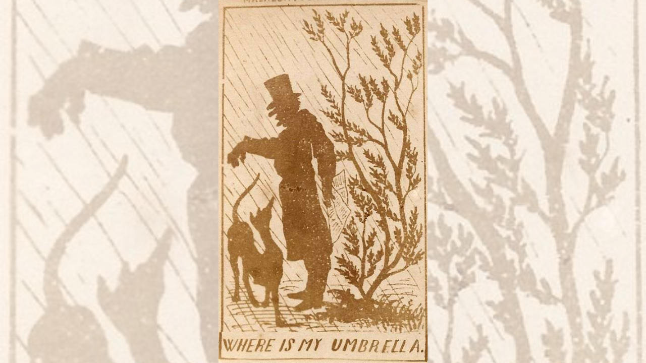 Na imagem abaixo, você verá um homem idoso e seu fiel cachorro, ambos pegos embaixo de uma chuva torrencial. Infelizmente, o homem esqueceu onde deixou seu guarda-chuva, e agora eles estão em apuros.