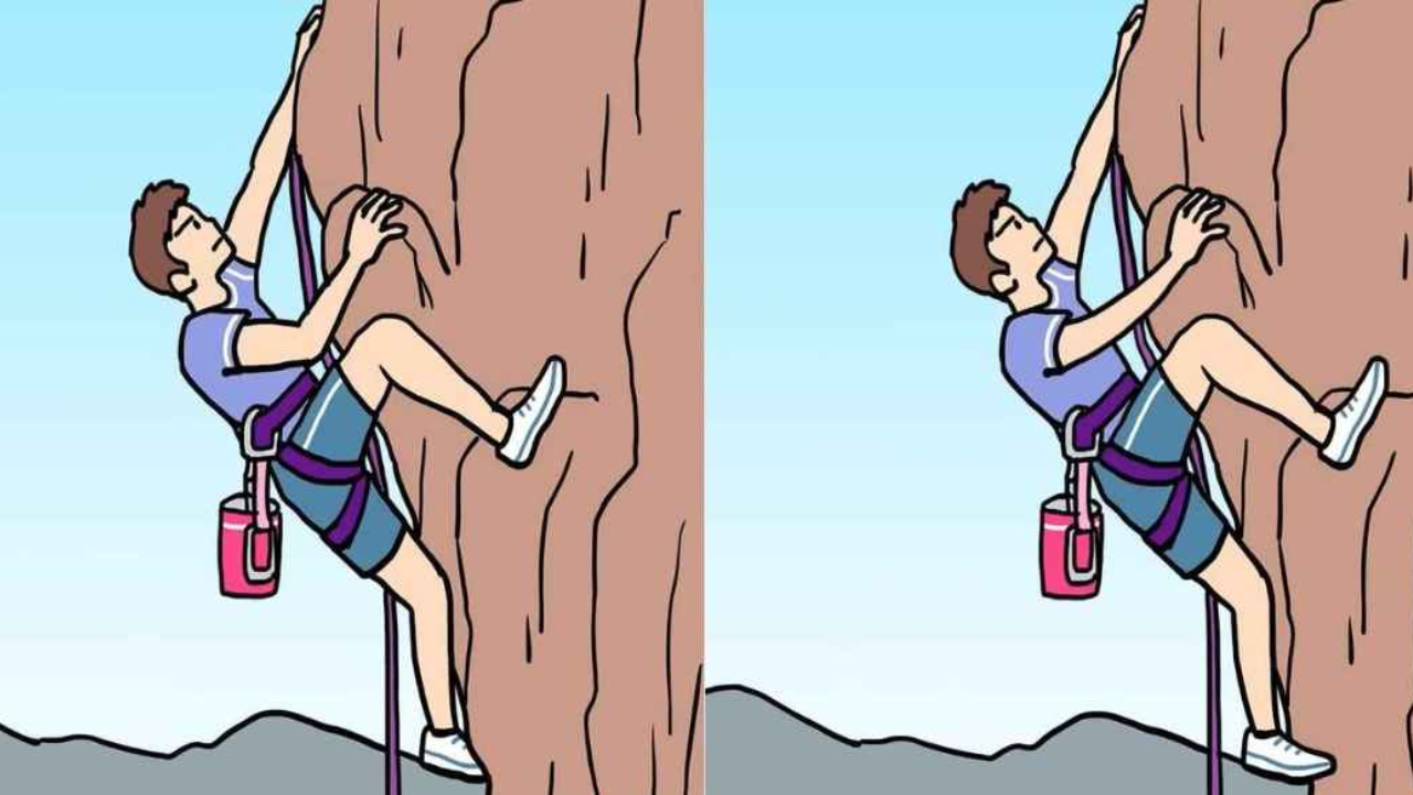 Desafio de observação: encontre 3 diferenças nas imagens do homem escalando em 8 segundos!