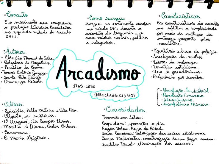 Mapa mental sobre o Arcadismo. Imagem: Pinterest