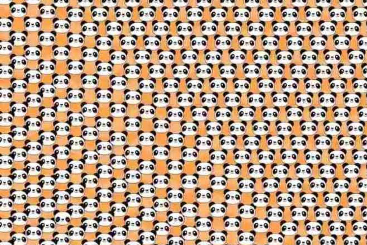 Na imagem abaixo, vemos uma matriz repleta de rostos de pandas idênticos, alinhados em fileiras e colunas. Todos os pandas parecem idênticos à primeira vista, mas um deles é ligeiramente diferente dos outros. O desafio é encontrar o panda estranho no meio de tantos pandas semelhantes. Esse tipo de ilusão de ótica testa sua capacidade de observação e atenção aos detalhes.