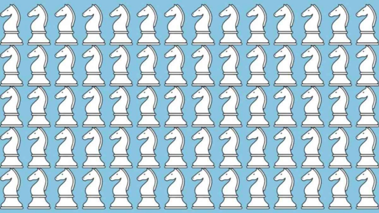 Olhe atentamente para a imagem das peças de xadrez do cavalo. Todas são semelhantes, mas apenas uma é diferente. Seus olhos precisam agir como scanners microscópicos para detectar a diferença em forma, ângulo ou textura. Desafie-se a encontrar a peça de xadrez diferente em apenas 8 segundos.