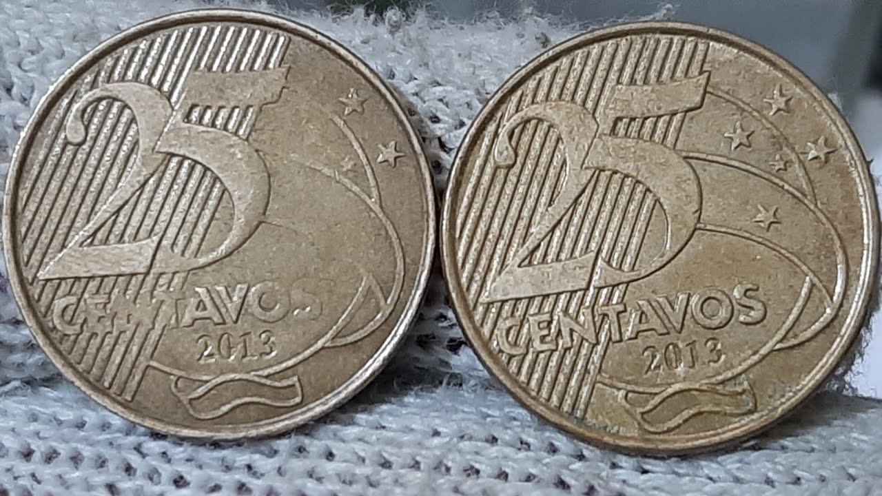 Qual é o valor da moeda de 25 centavos do ano de 2013?