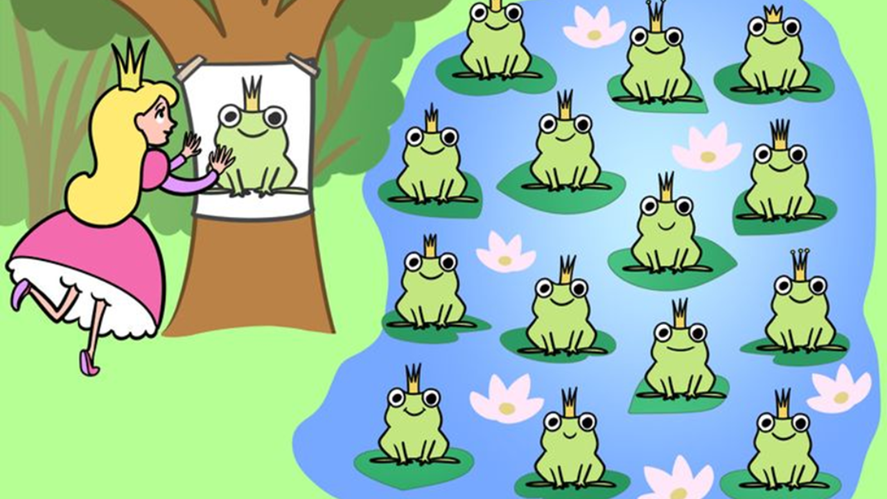 O desafio apresentado aqui é simples e, ao mesmo tempo, instigante. Em uma imagem repleta de sapos, um deles é o príncipe que a princesa procura.