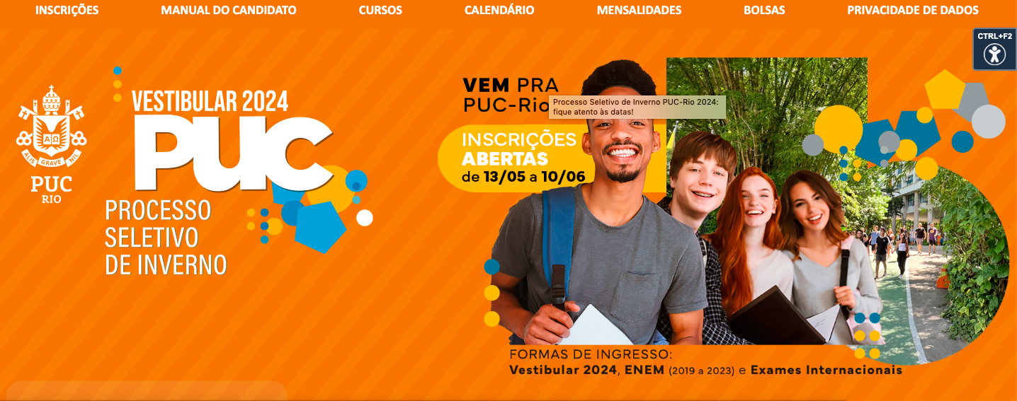 Conforme havia sido indicado no calendário oficial do processo seletivo, as inscrições para o Vestibular de Inverno 2024 da PUC-Rio começaram no mês de maio e os interessados poderão se inscrever até esta segunda-feira, dia 10 de junho.