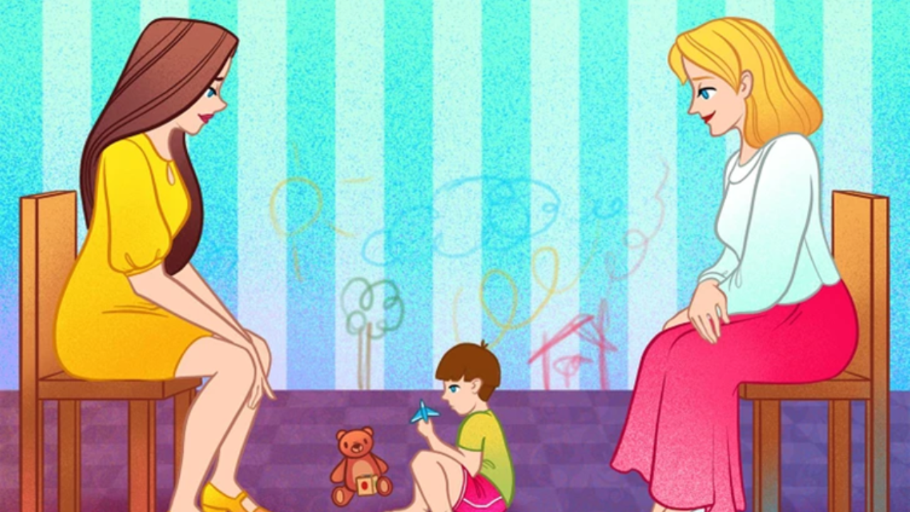 Aparentemente, qualquer pessoa que observasse a cena poderia pensar que ambas as mulheres poderiam ser a mãe da criança, mas há mais do que aparenta. A verdadeira questão é: como determinar qual das duas mulheres é a mãe do menino?