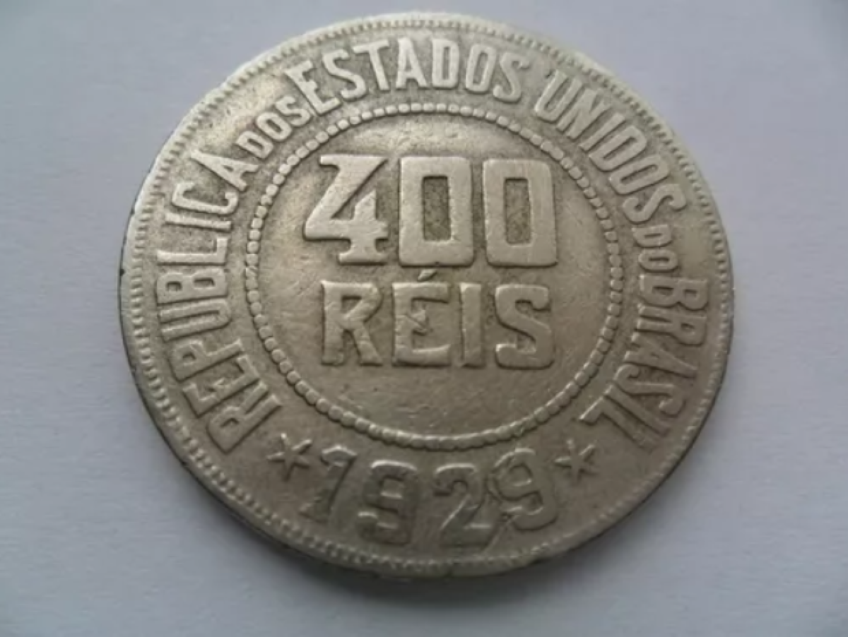 Uma das moedas antigas mais valorizadas no Brasil é a de 400 réis, fabricada em 1929. Essa moeda, feita de CuproNíquel, possui 75% de metal e 25% de níquel, pesando 12 gramas e com bordo liso. A Casa da Moeda, localizada no Rio de Janeiro, produziu apenas 868.500 unidades dessa moeda, o que a torna rara e cobiçada pelos colecionadores.