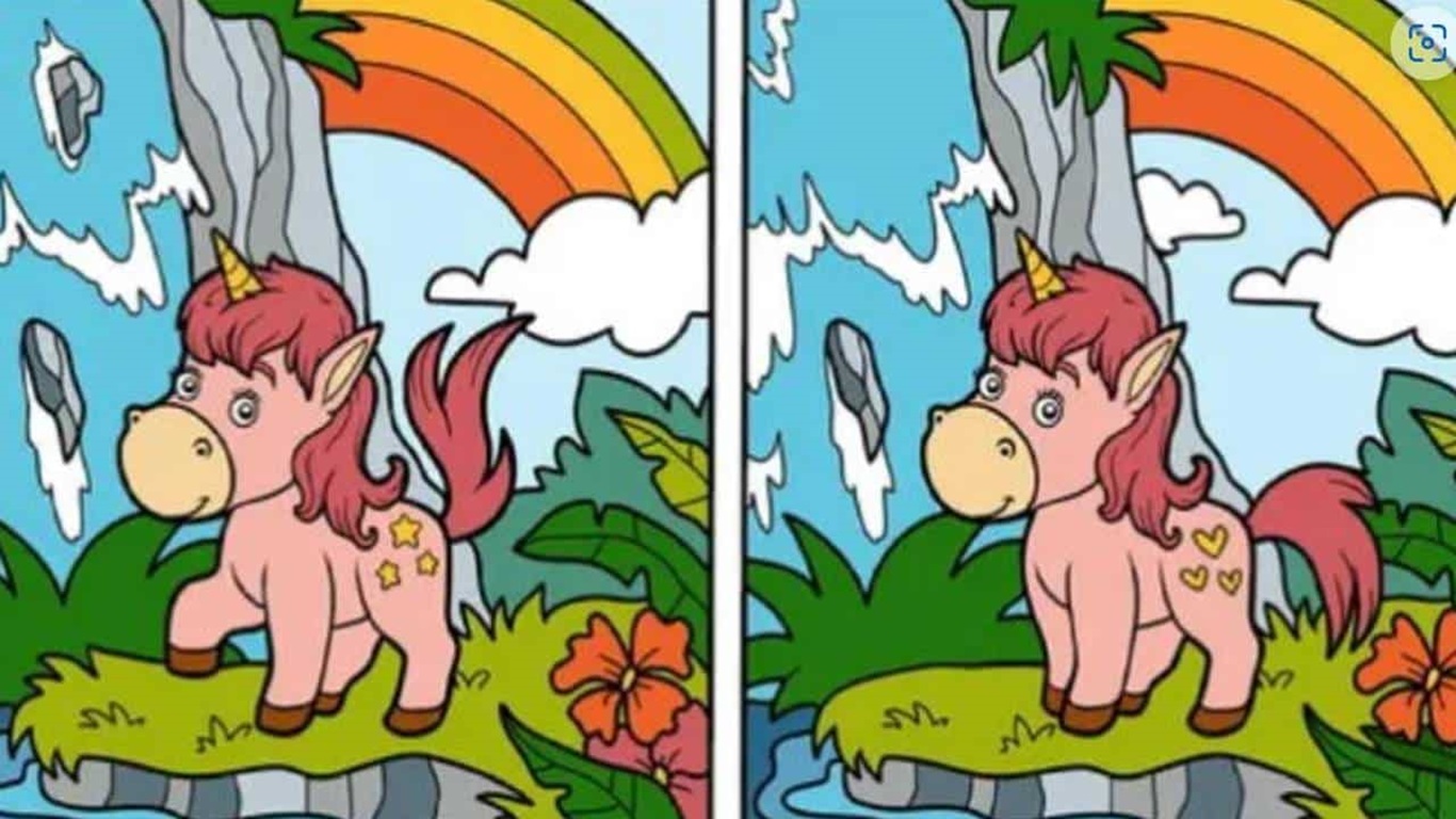 Este desafio de raciocínio lógico é uma excelente maneira de testar a agilidade visual e a capacidade de observação dos participantes. Com um limite de tempo de apenas 25 segundos, a pessoa deve identificar rapidamente oito diferenças entre duas imagens de um unicórnio colorido em um cenário encantado com um arco-íris e uma cachoeira. Esse exercício não só desafia a percepção visual, mas também a habilidade de manter a calma e a concentração sob pressão.